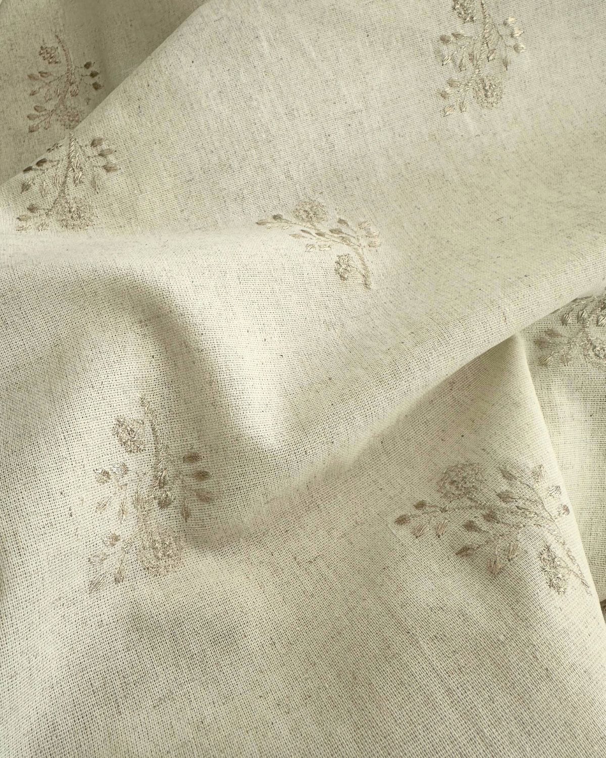 Tissu broderie imprimé feuillage en relief en lin mélangé élégant et chic pour vous permettre de confectionner vos projets d’habillement : chemisiers, pantalons légers, et d’ameublement : rideaux, linges de lit, housse de coussin et linges de table.