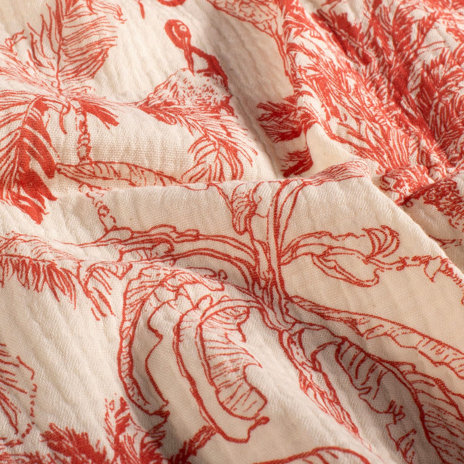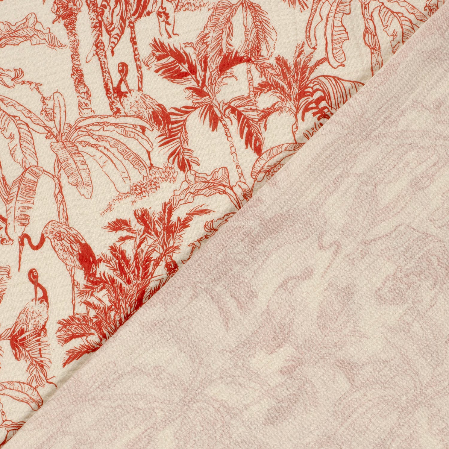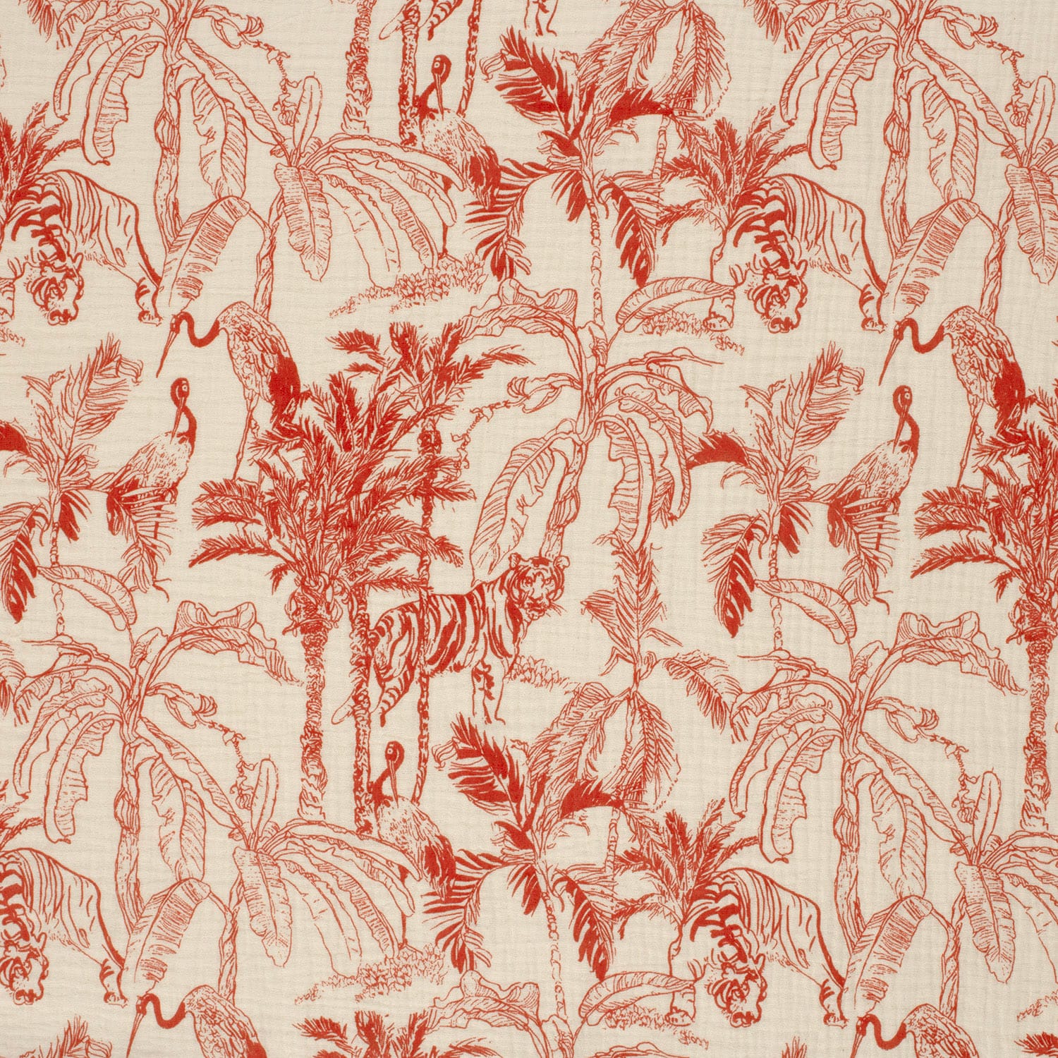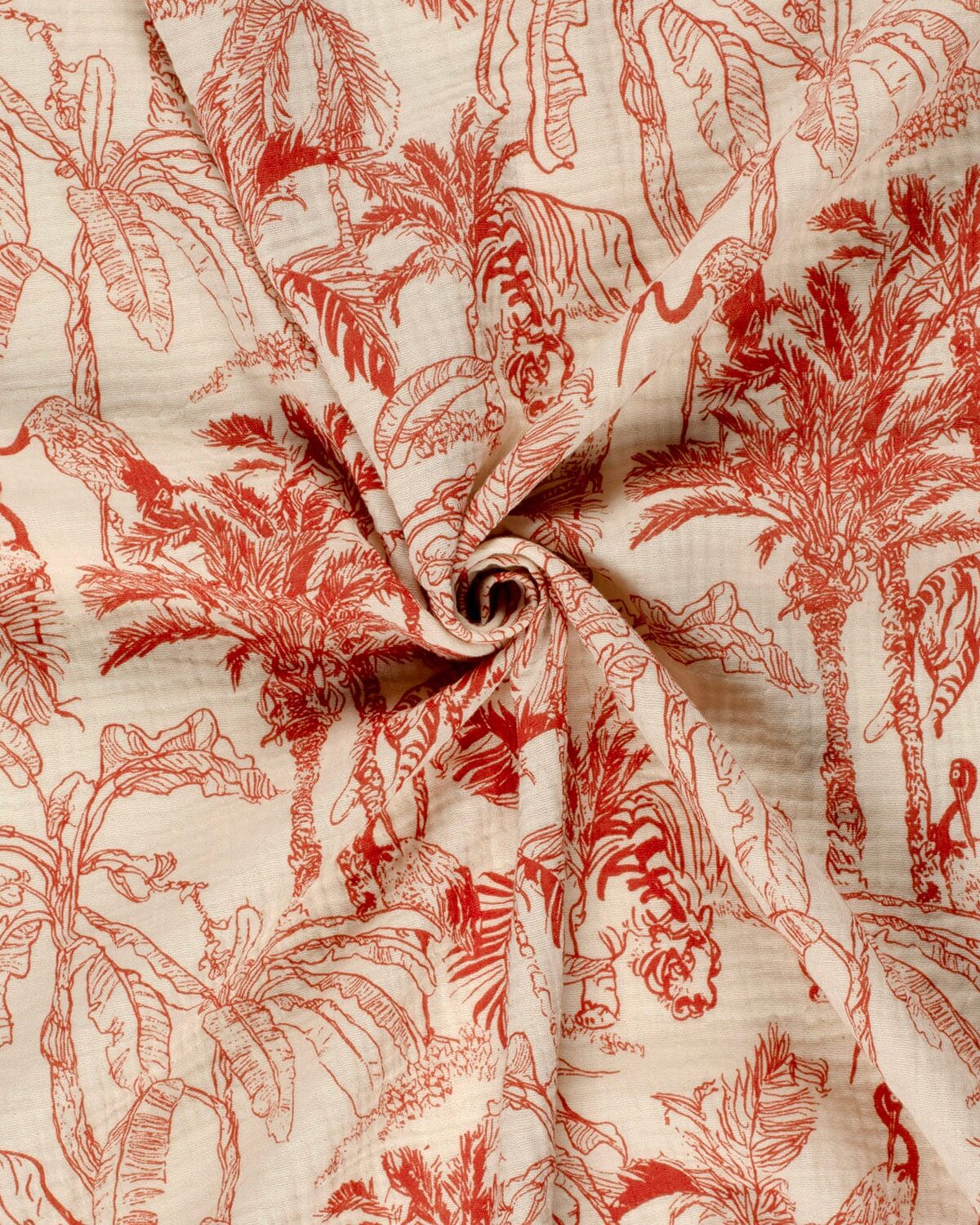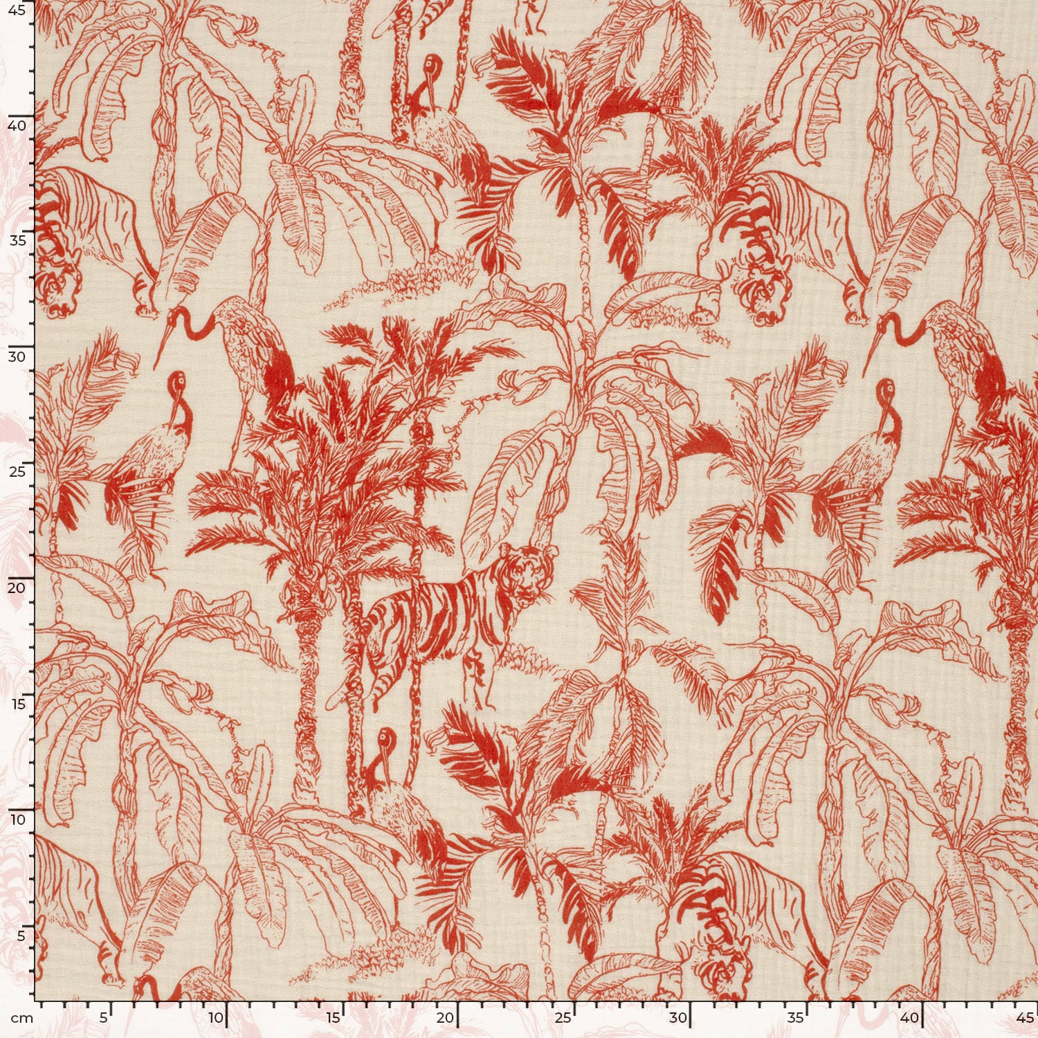 Tissu Double Gaze Teint Imprimé Jungle Rouge
