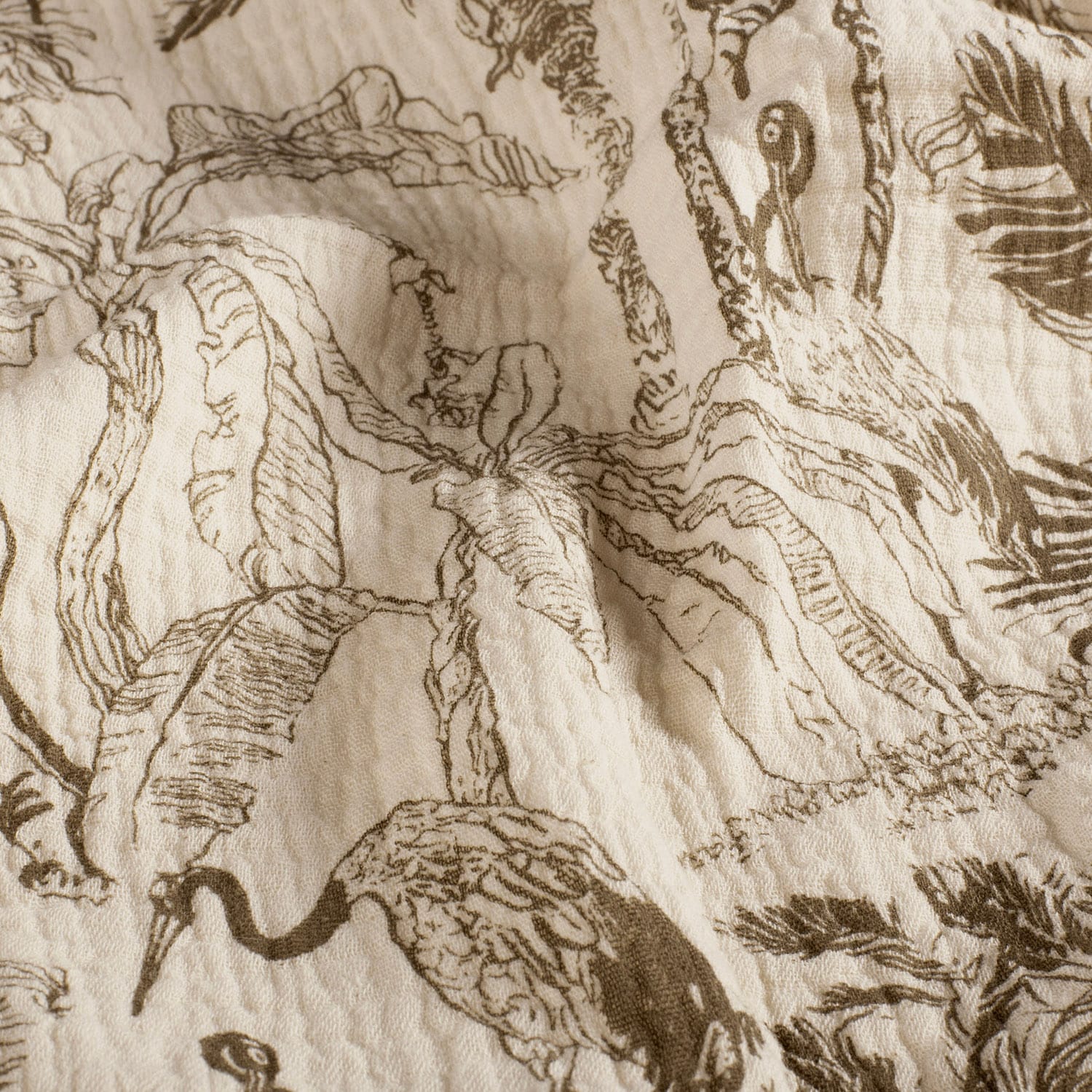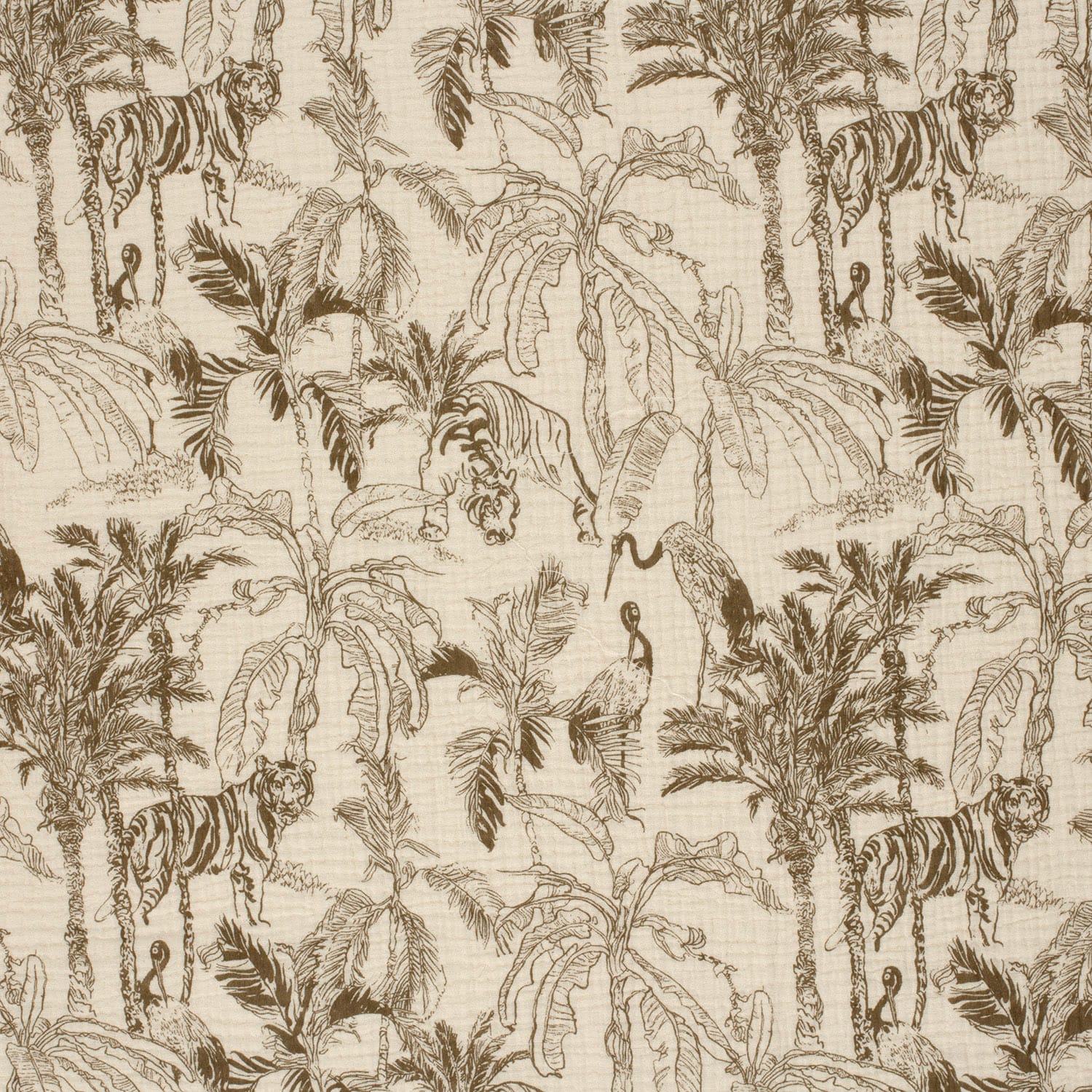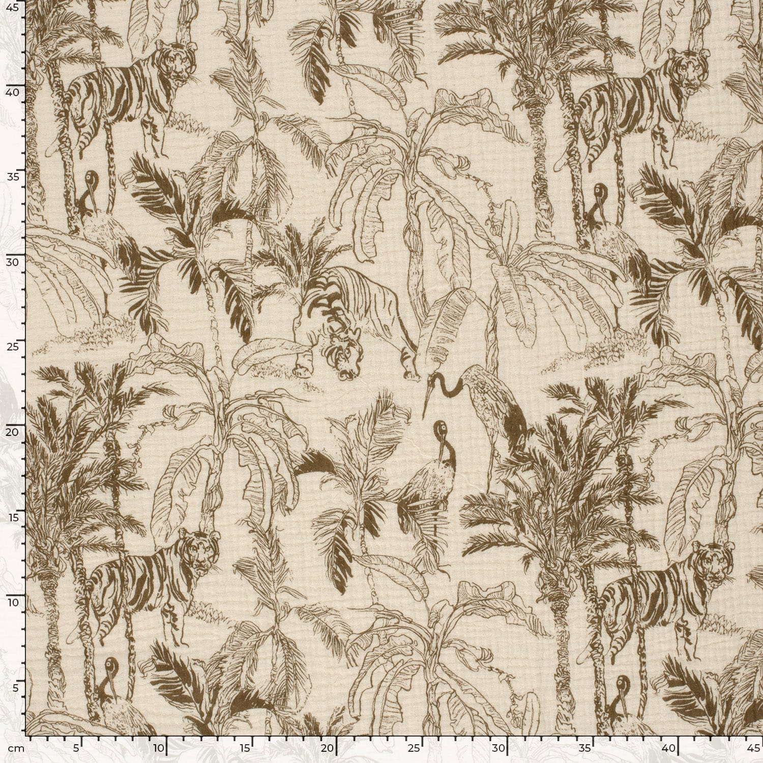 Tissu Double Gaze Teint Imprimé Jungle Taupe