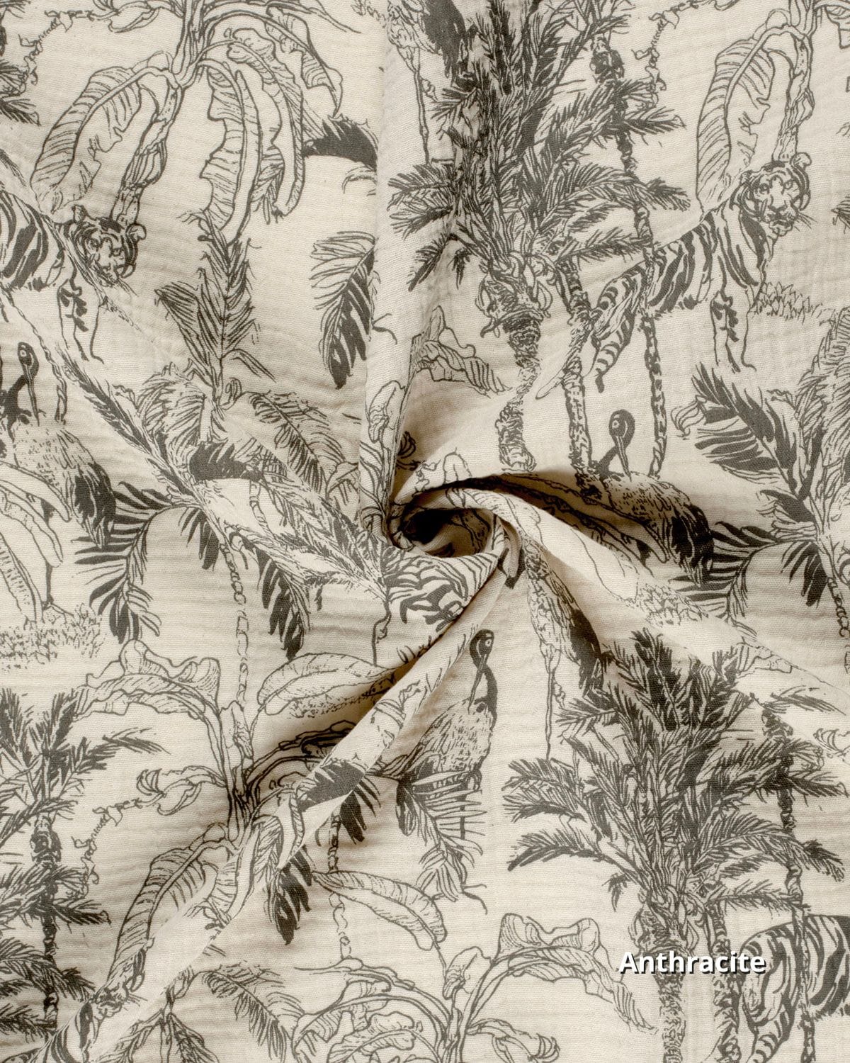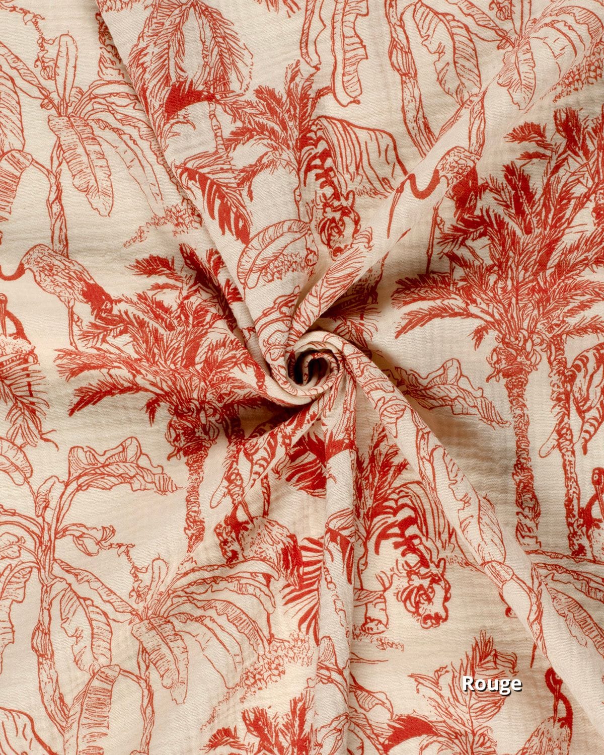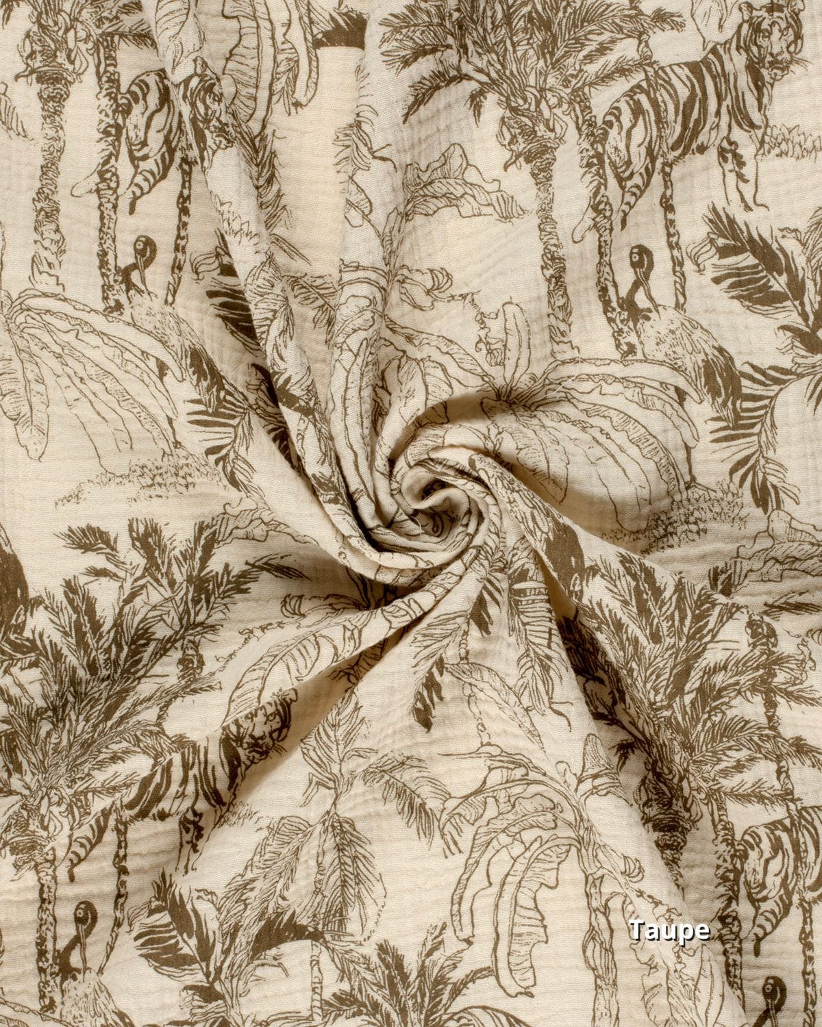 Tissu Double Gaze Teint Imprimé Jungle : 5 Coloris