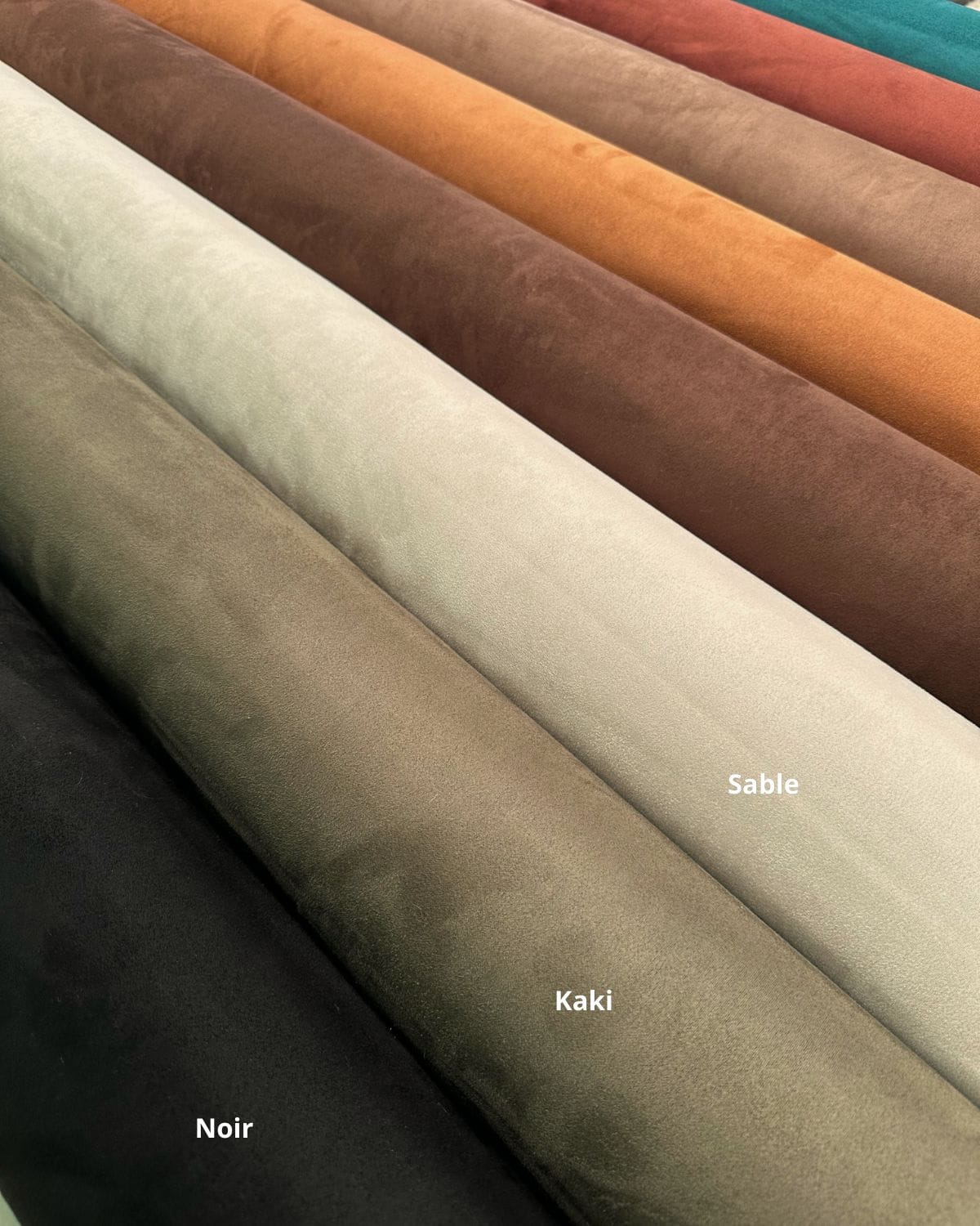 Tissus suédines unis 280g/m² au look très tendance. Qualité stretch pour vous permettre de confectionner des vêtements (chemises, robes, salopettes…) Vous pourrez aussi employer ce tissu pour de l’ameublement d’intérieur : rideaux, housses de coussin, jetées de banquettes) et aussi pour des sacs ou chapeaux.