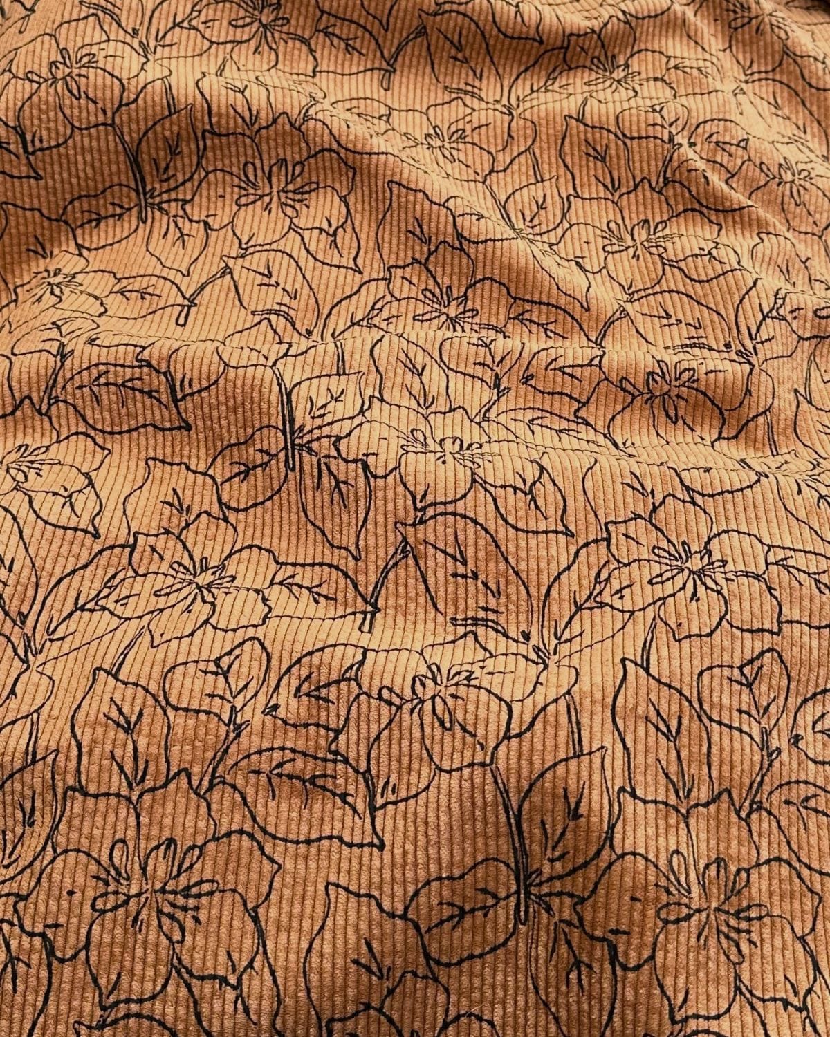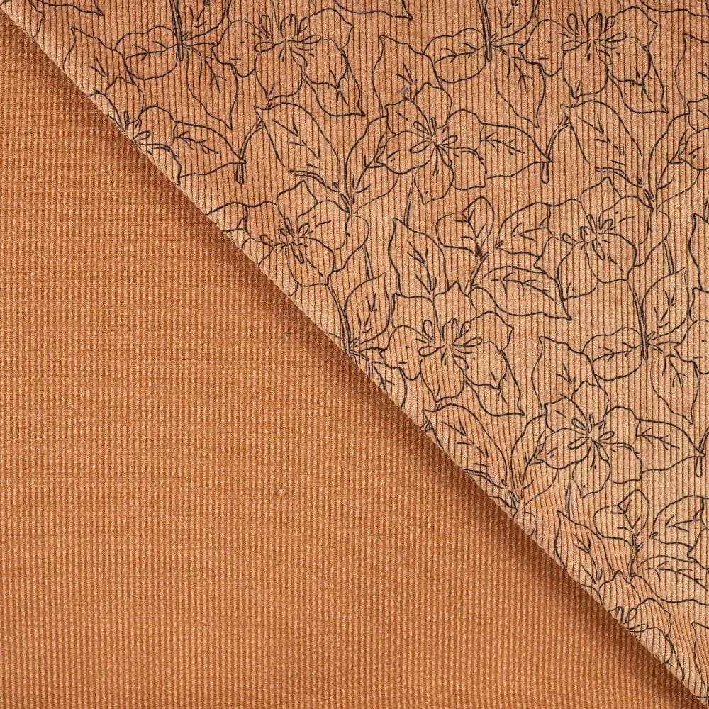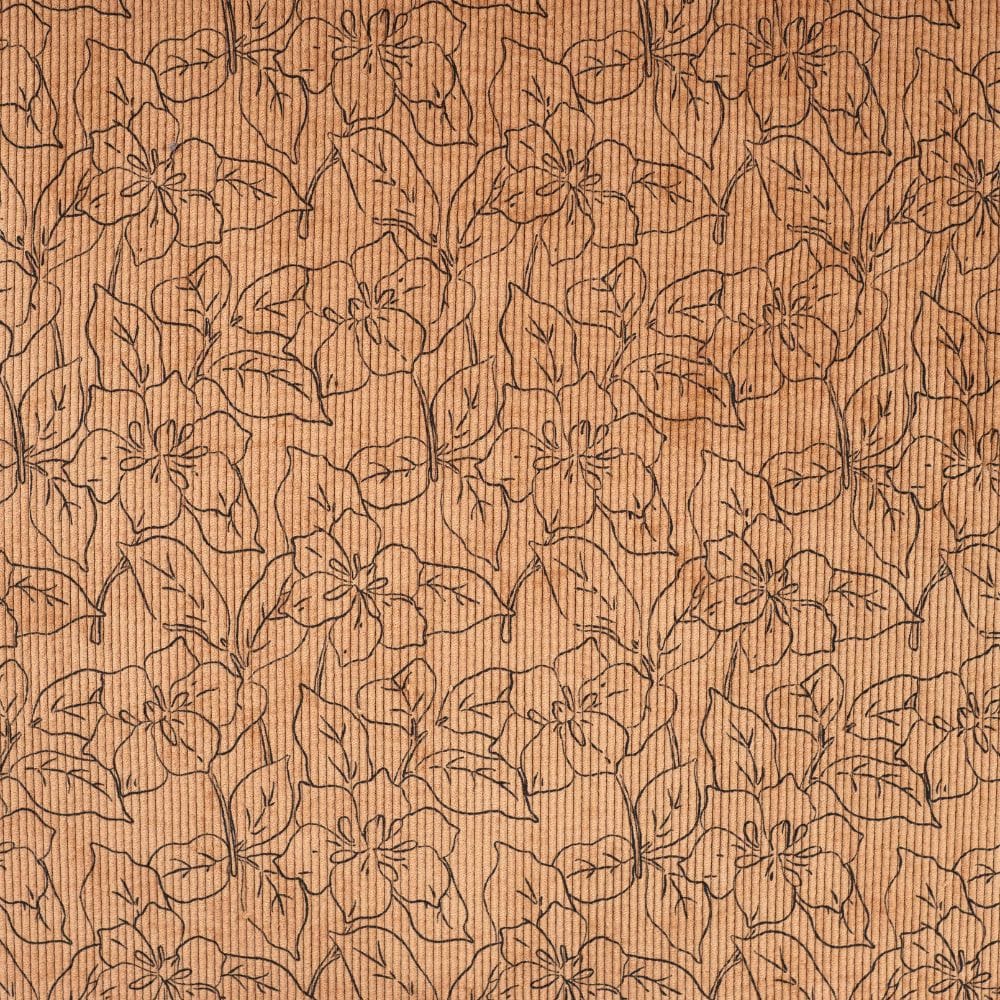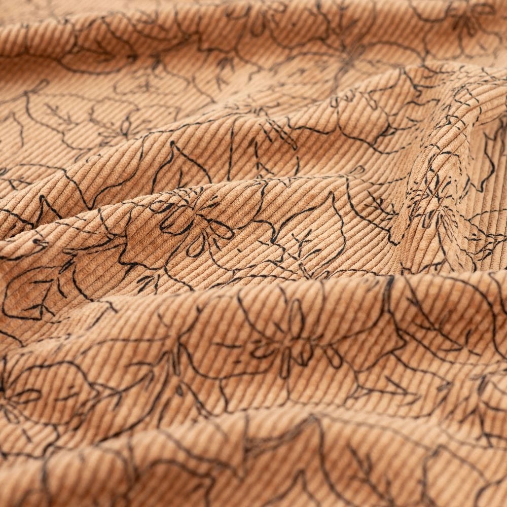 Tissu Velours Côtelé 500 Raies Imprimé Pierre de Fleurs Camel