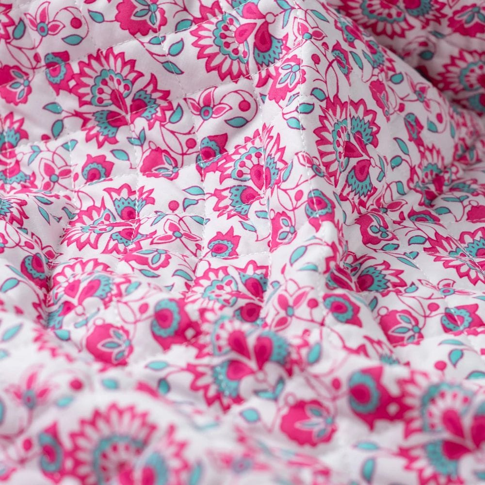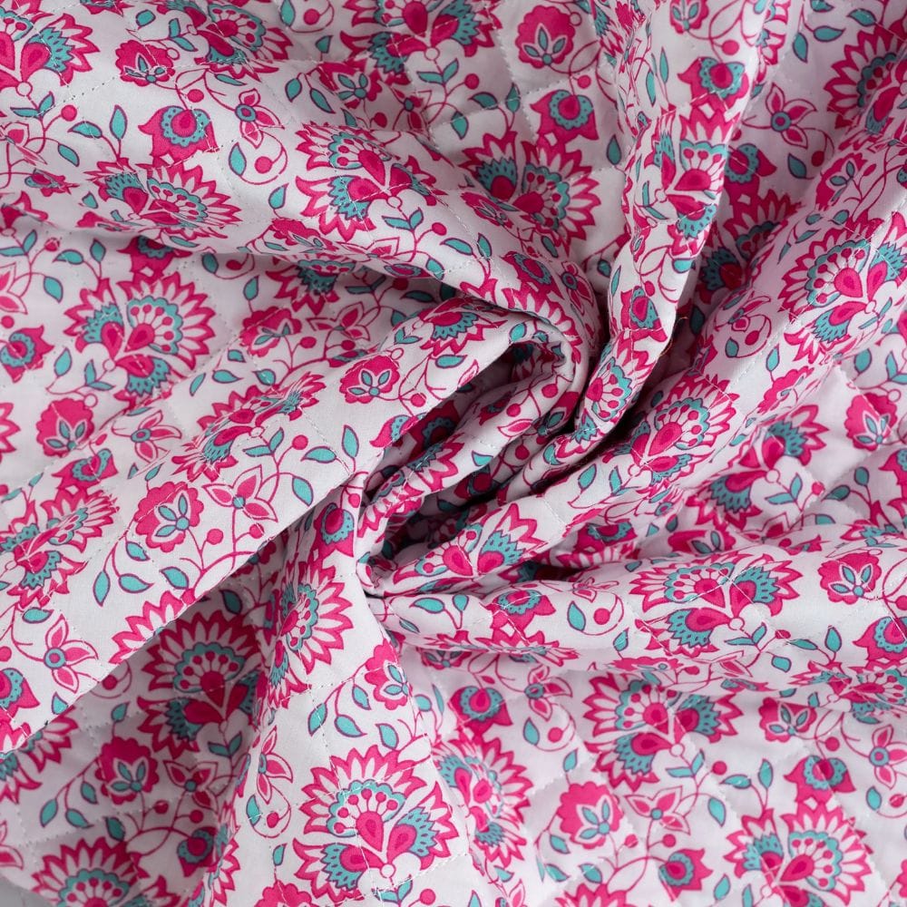 Voile de Coton Matelassé Fleur Indienne Réversible Fuchsia